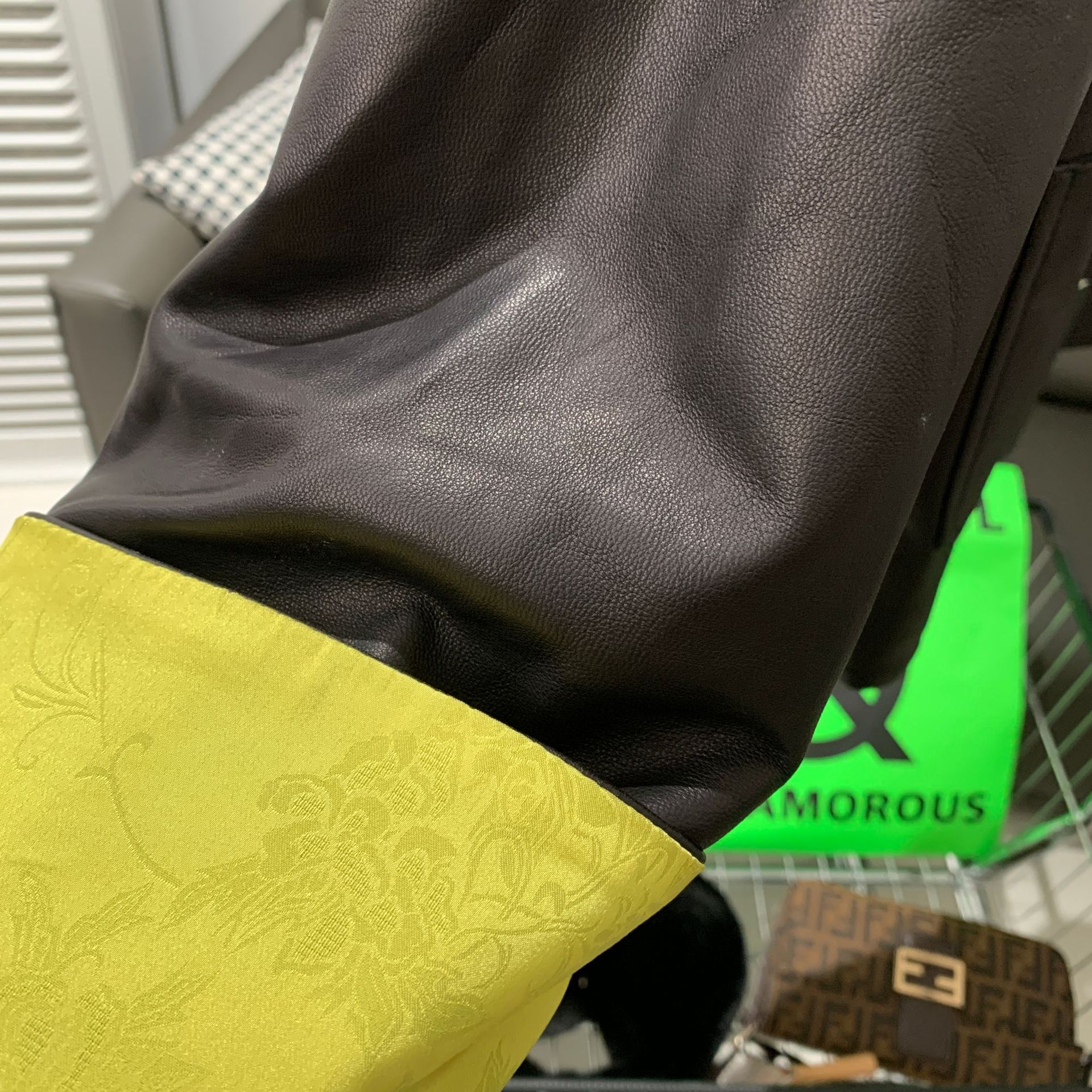 2024 الربيع والخريف جديد حقيقي جلد الغنم الخضار المدبوغة معطف جلد جديد الصينية التباين اللون زر فضفاض سترة جلدية معطف