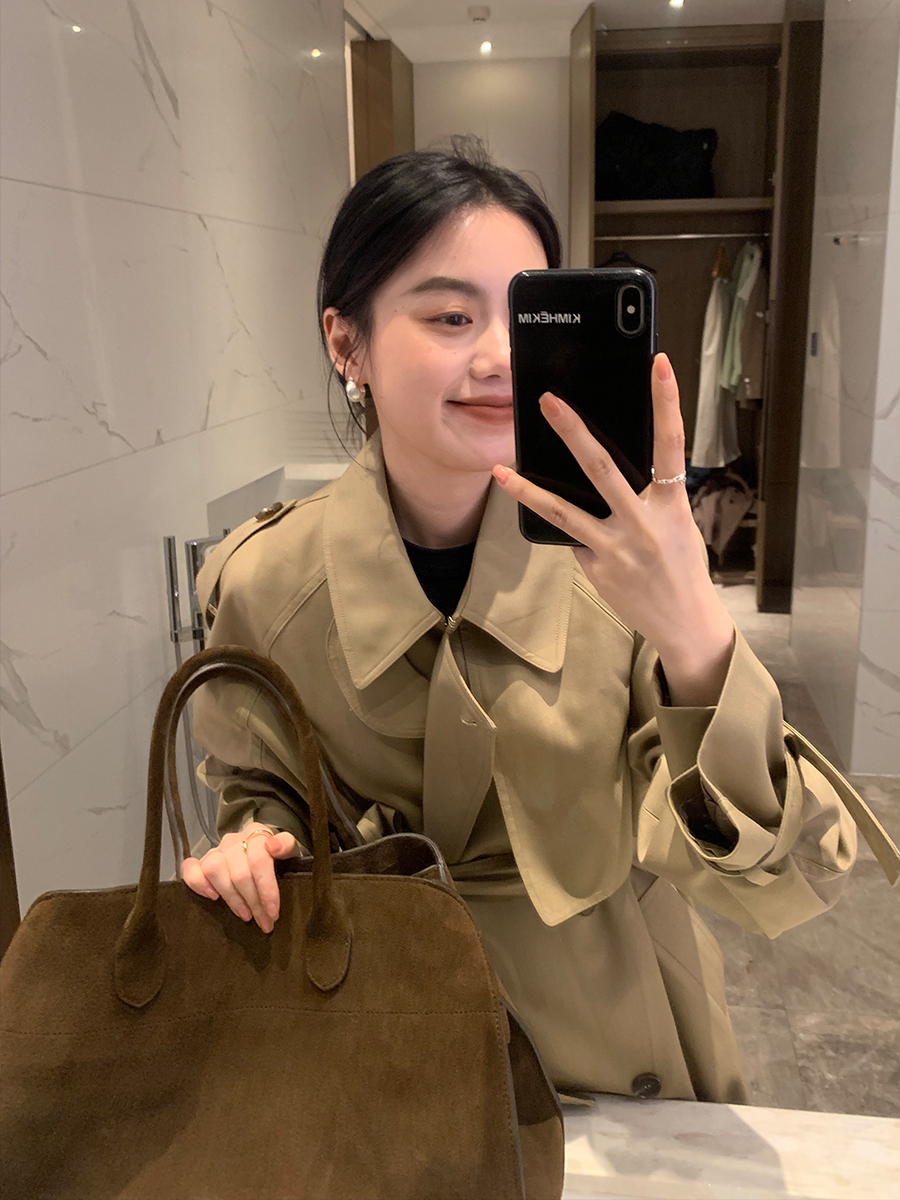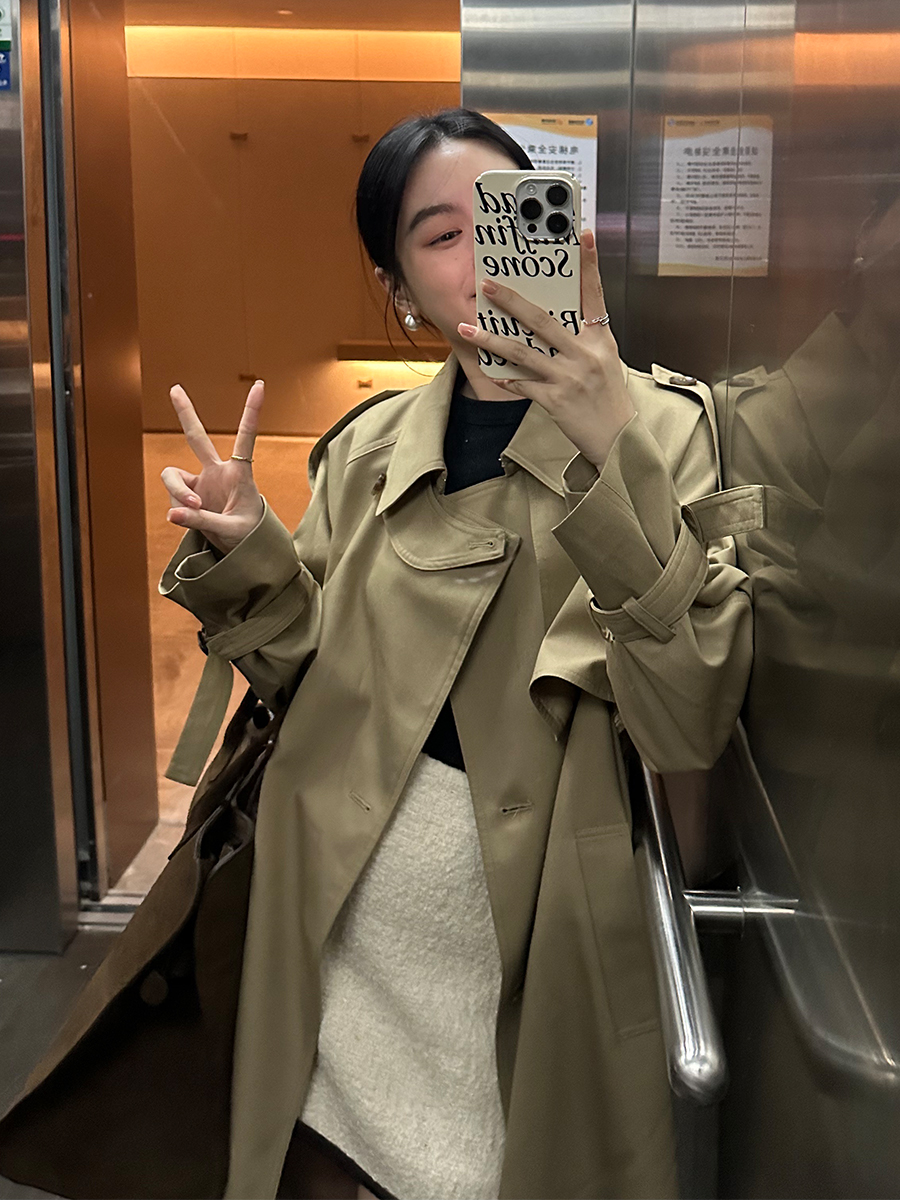 2024 Spring and Autumn New khaki Coat Coat Women's Small Korean Mid-length High-end Dressing Coat