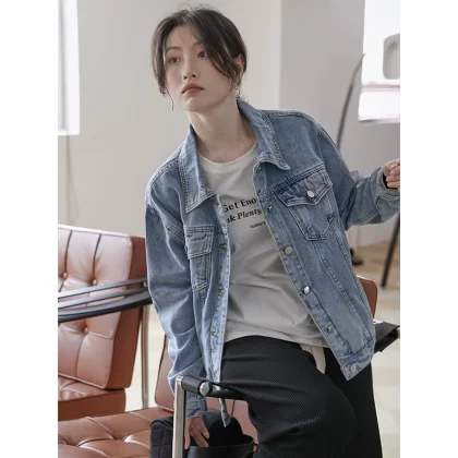 | nameOriginal | 2024 Spring and Autumn New Korean Style Washed Retro Blue Denim Jacket Women's Hong Kong Style BF Loose Jacket Top Trendy |