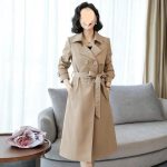 جديد ربيع وخريف 2024 معطف تنحيف مناسب للنساء متوسط ​​الطول كاكي مقاس كبير معطف أنيق عصري راقي عصري