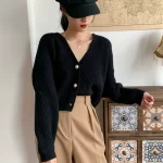 | nameOriginal | 2024 Spring and Autumn New Style Cardigan Sweater Women's Loose Short V-neck Knitted Black Lazy Style Jacket Women's Thick |