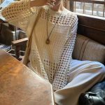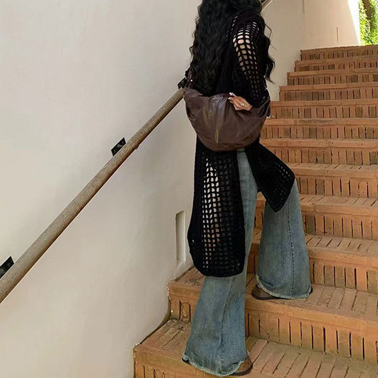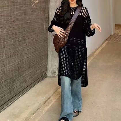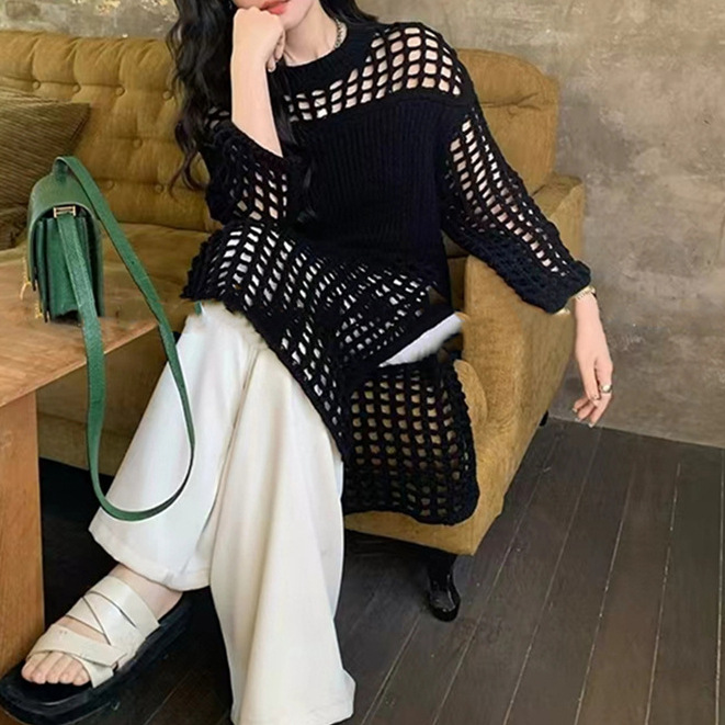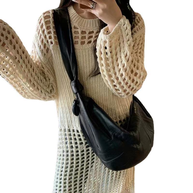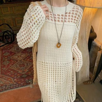 2024 Spring and Autumn New Style Design Light Luxury Elegant Polyester Hollow Knitted Dress Women's Gauze Mesh Skirt Trend