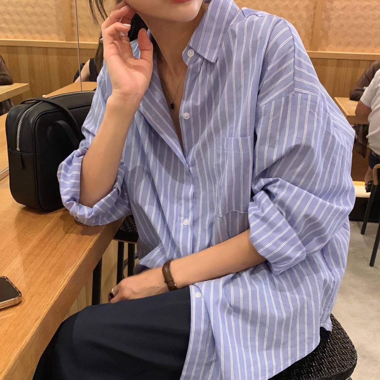 | nameOriginal | 2024 spring and autumn South Korea chic retro single-breasted shirt striped top casual bottoming outerwear striped shirt |