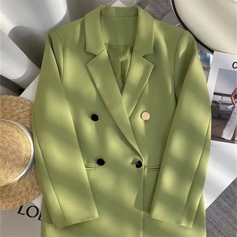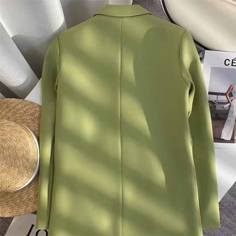 2024 الربيع والخريف الملابس النسائية الكورية نمط تصميم جديد مزاجه بسيط بدلة على الموضة سترة طويلة الأكمام الحلوى الخضراء دعوى