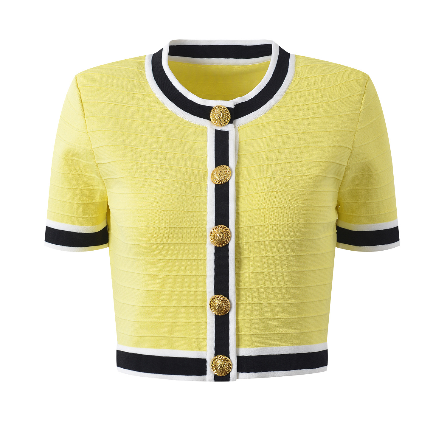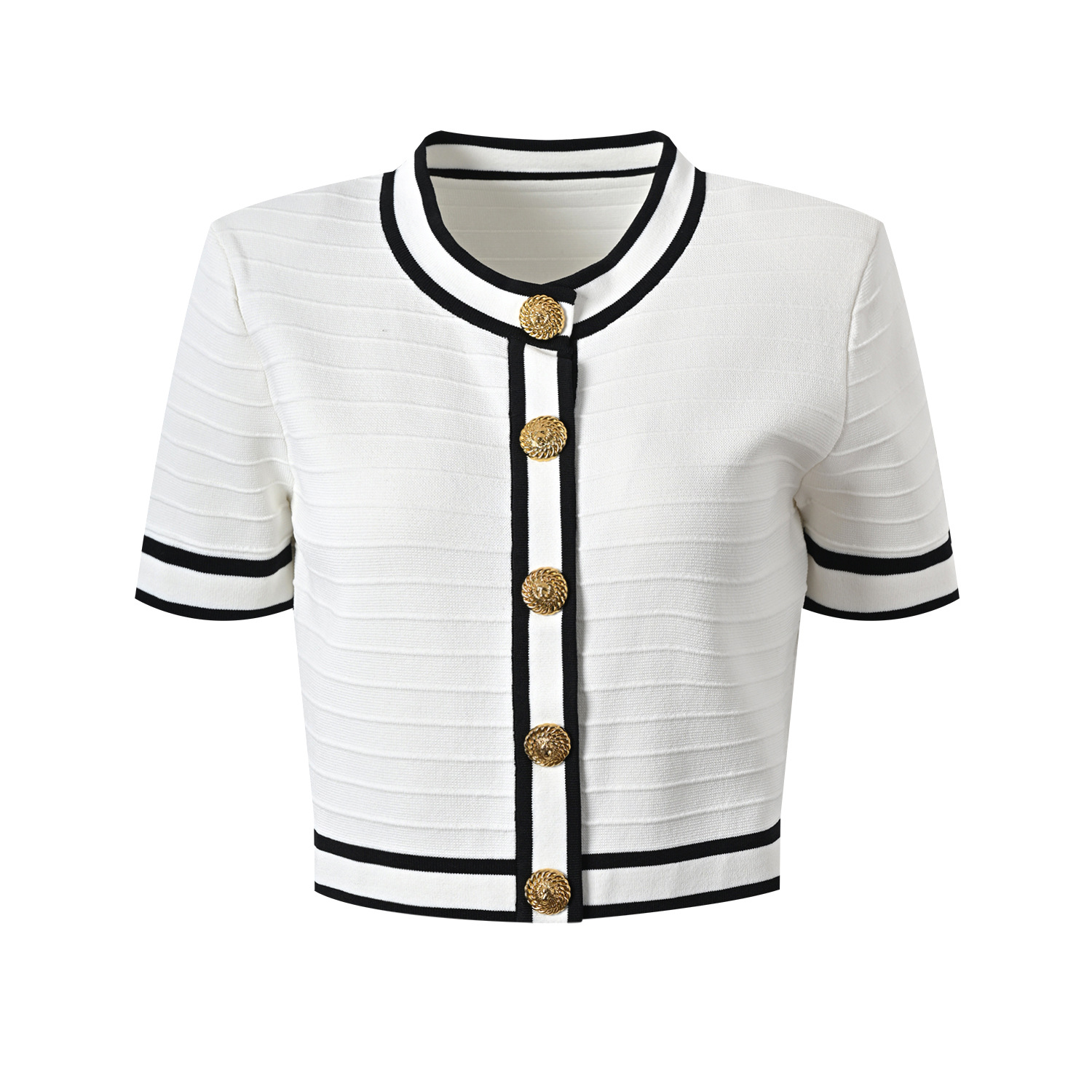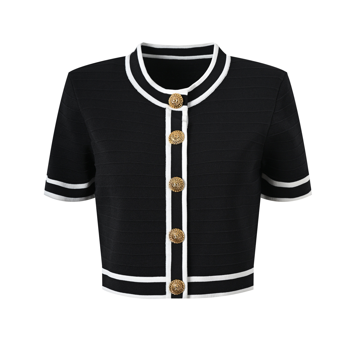 | nameOriginal | 2024 spring and summer new elegant gentle style contrast color round neck metal buckle Ice Silk short sleeve fashion commuter all-match top |