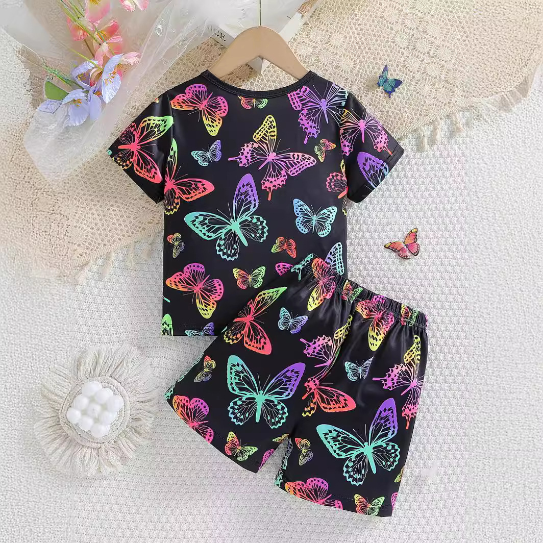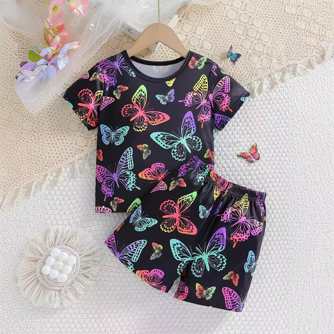 | nameOriginal | 2024 spring and summer new girls' pajamas round neck short sleeve shorts luminous butterfly outerwear homewear suit |