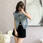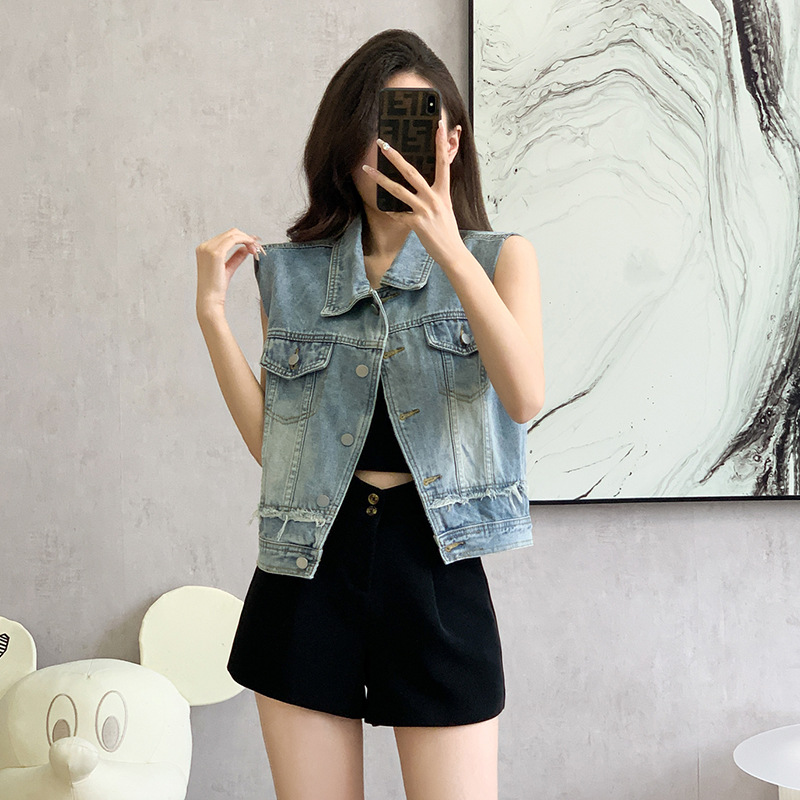 2024 spring and summer new light blue Denim vest retro versatile slimming stacked top