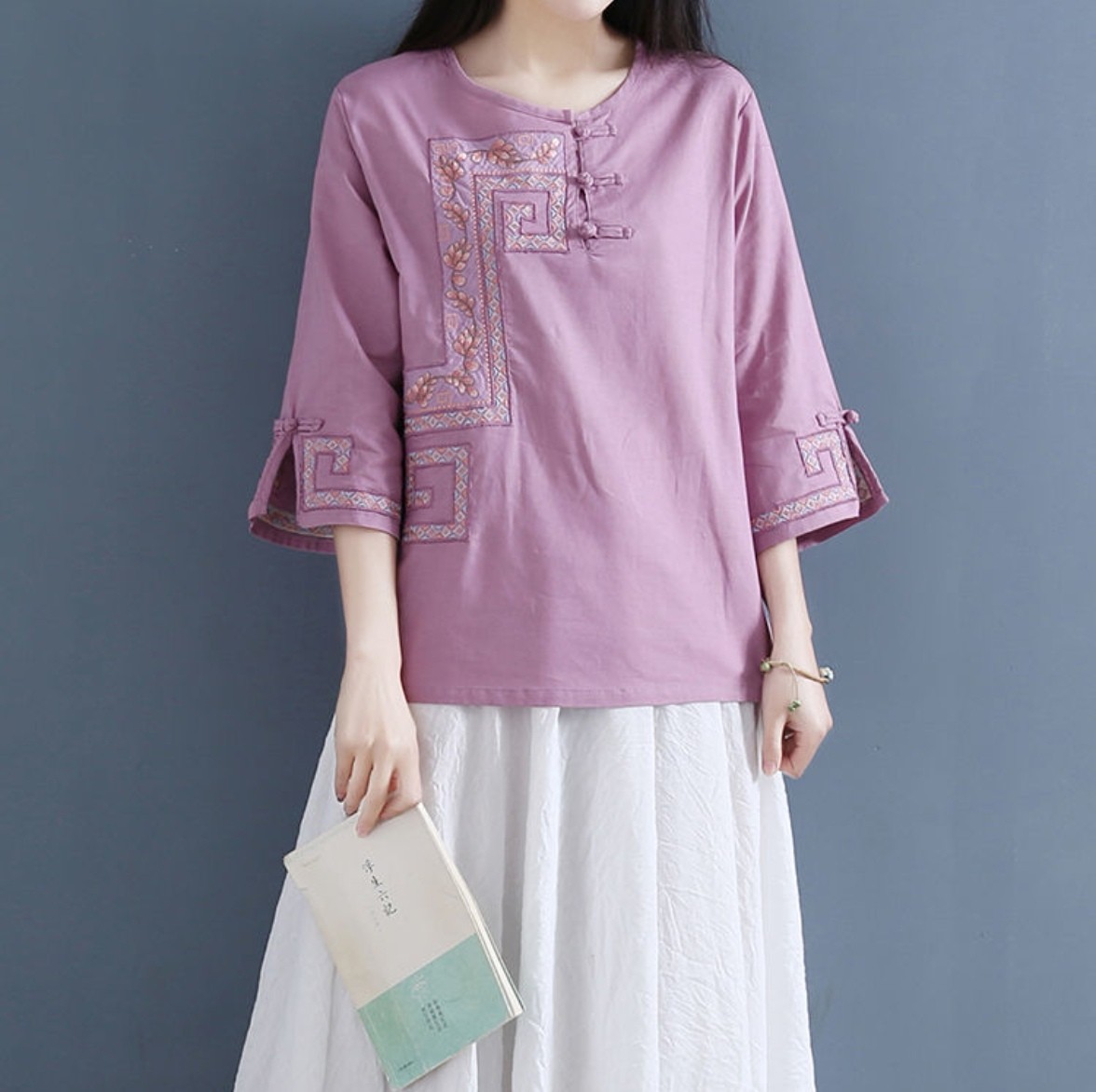 | nameOriginal | 2024 Spring and Summer New Retro Button Linen Top Cotton and Linen Shirt Women's Chinese Round Neck Embroidered Shirt Zen Tea Clothing |