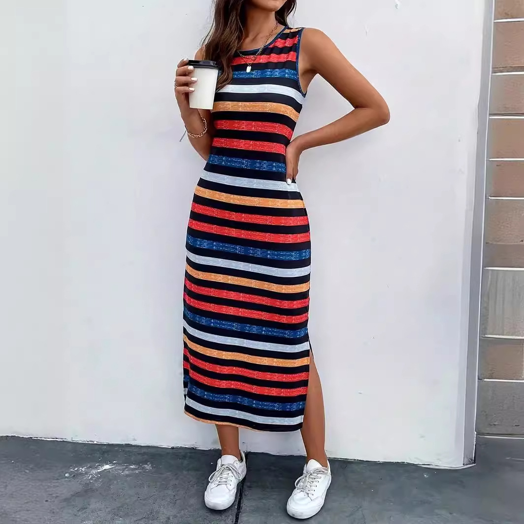 | nameOriginal | 2024 spring and summer TEMU Amazon European and American women's cross-border new fashion striped round neck sleeveless dress women |