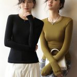 2024 ربيع الخريف والشتاء الأسود مشروط Crewneck قاعدة قميص المرأة البدلة الداخلية سليم صالح الراقية تحسس جديد كم طويل
