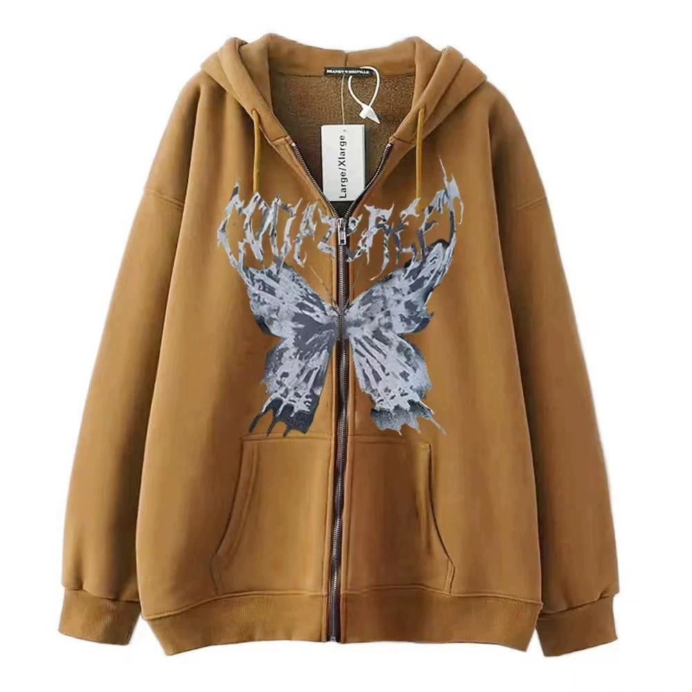 | nameOriginal | 2024 spring hooded sweatshirt cross-border zipper sweatshirt European and American butterfly jacket Gothic style sports hooded sweatshirt for women |