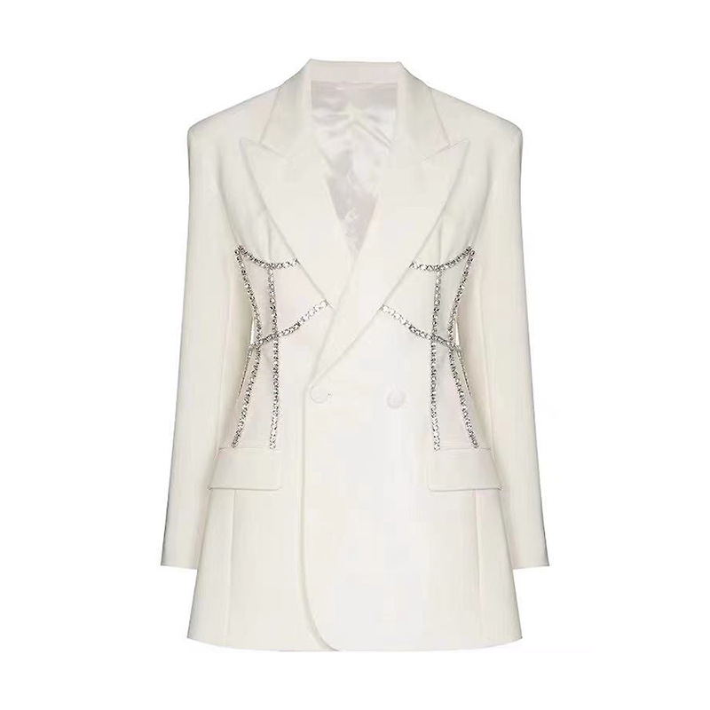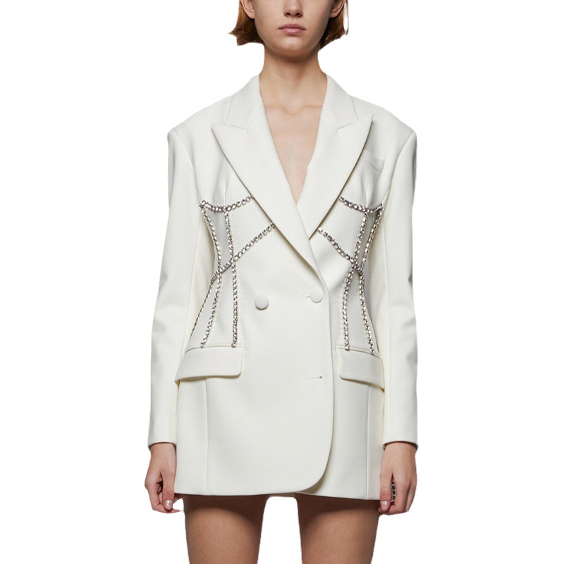 | nameOriginal | 2024 spring light luxury rhinestone decorative European and American suit jacket Women's Mid-length fashionable waist-tight small suit skirt 9819 |