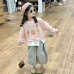 2024 spring new children's clothing Korean style children's clothing girls' cartoon printed fake two-piece sweater kindergarten sweater