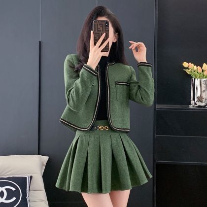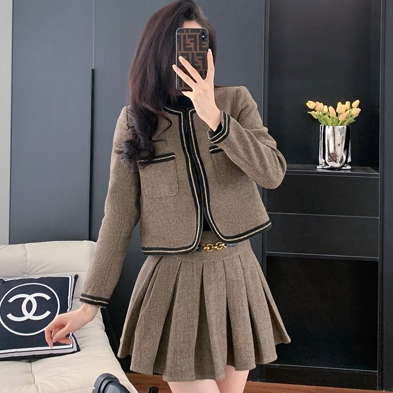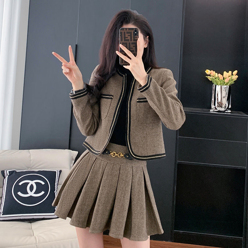 | nameOriginal | 2024 spring new French style elegant Chanel style pleated skirt suit women's fashionable western style age-reducing top two-piece set |