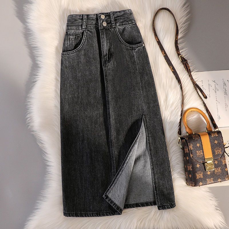 | nameOriginal | 2024 spring new high waist plus size Denim skirt women's versatile slimming side slit A- line mid-length skirt fashion |