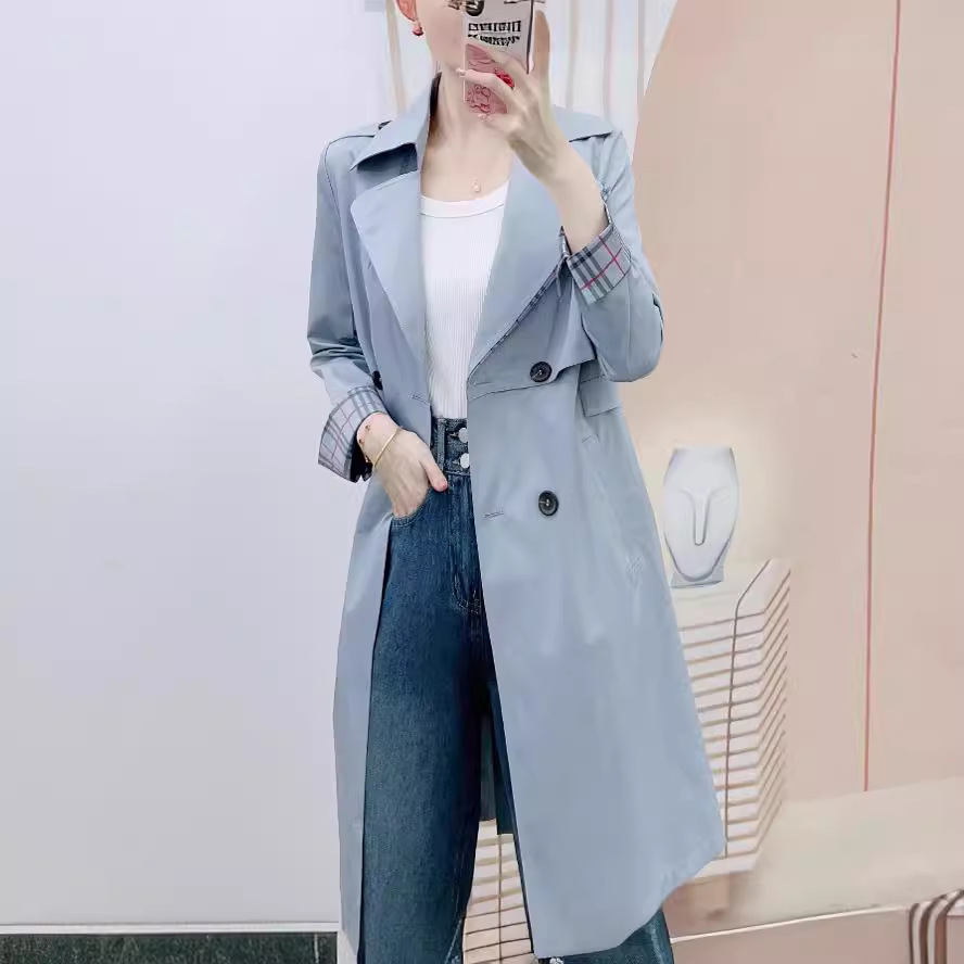 | nameOriginal | 2024 spring new pink windbreaker women's long coat double breasted coat solid color long sleeve |