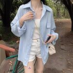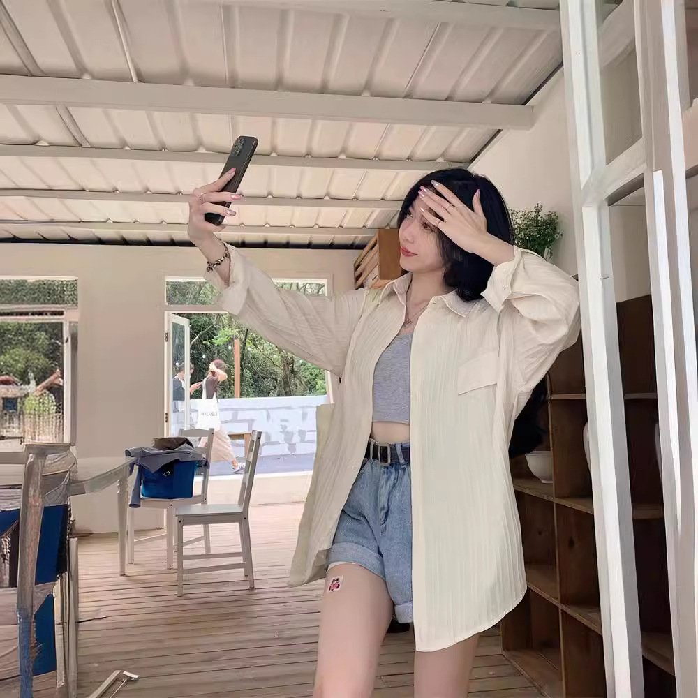 2024 ربيع جديد بالإضافة إلى حجم التصميم الفرنسي طويلة الأكمام قميص الحماية من الشمس الصيف المتخصصة أنيقة قميص صغير معطف القميص