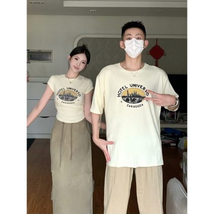 | nameOriginal | 2024 Summer Couple's Short-sleeved Simple Printed Casual T-shirt Men's and Women's Workwear Dress Suit Unisex Top |