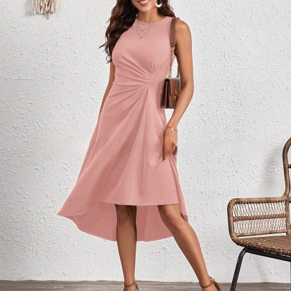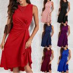 | nameOriginal | 2024 summer Europe and America Amazon cross-border women's summer new fashion sleeveless solid color A word wrinkle dress |