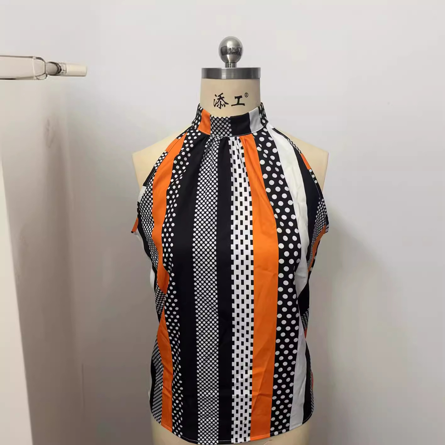 2024 Summer European and American Fashion Foreign Trade Printed Shoulder Collar Neck Shirt