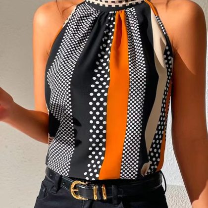 قميص برقبة وياقة كتف ومطبوع على الموضة الأوروبية والأمريكية لصيف 2024