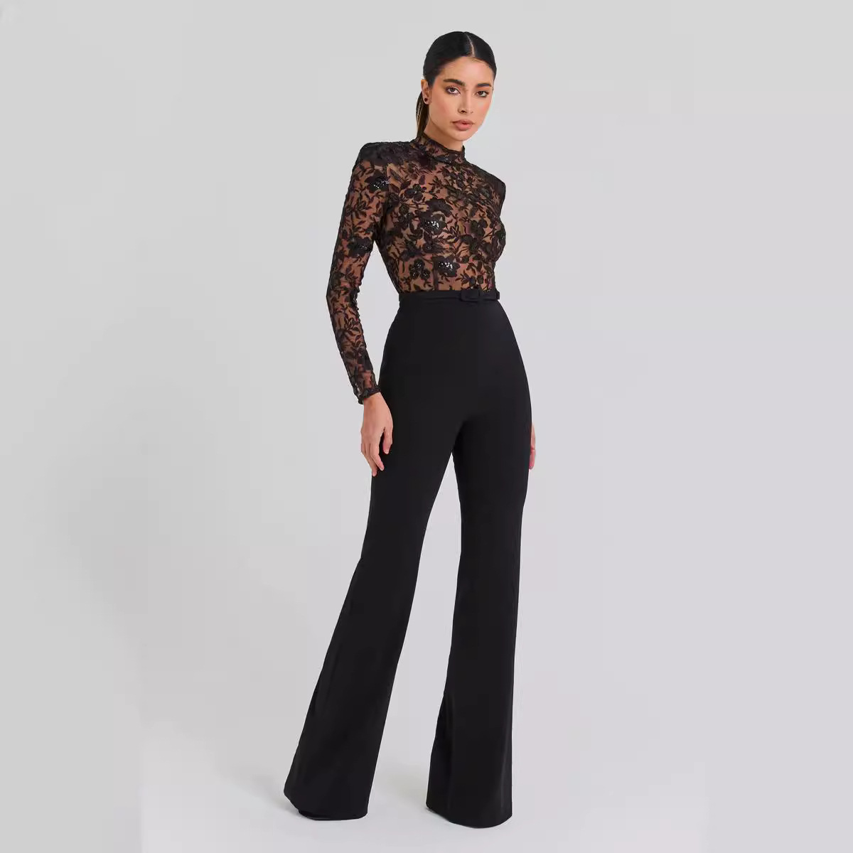 | nameOriginal | 2024 summer European and American new fashion sexy lace sequins feather bandage jumpsuit women a generation of hair |