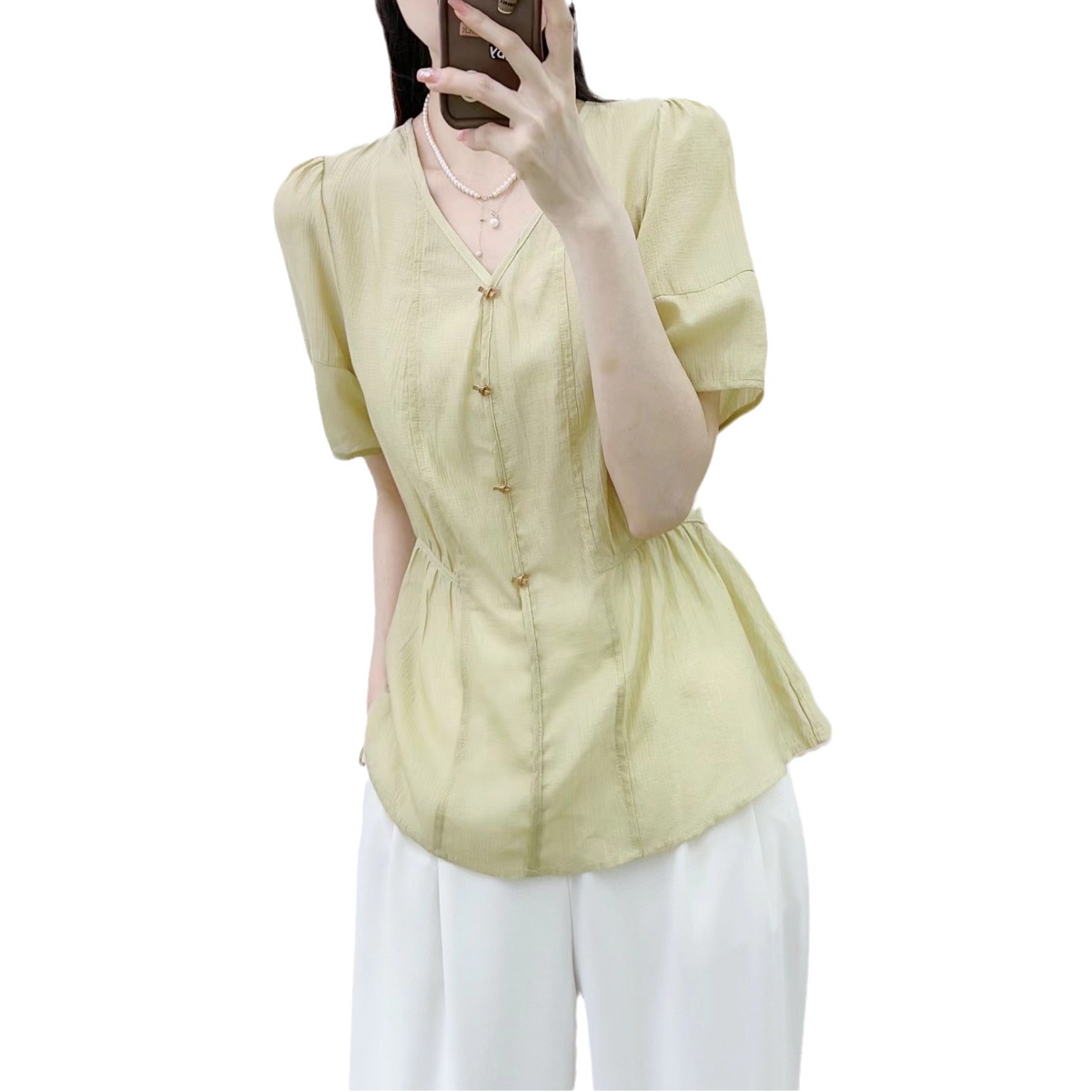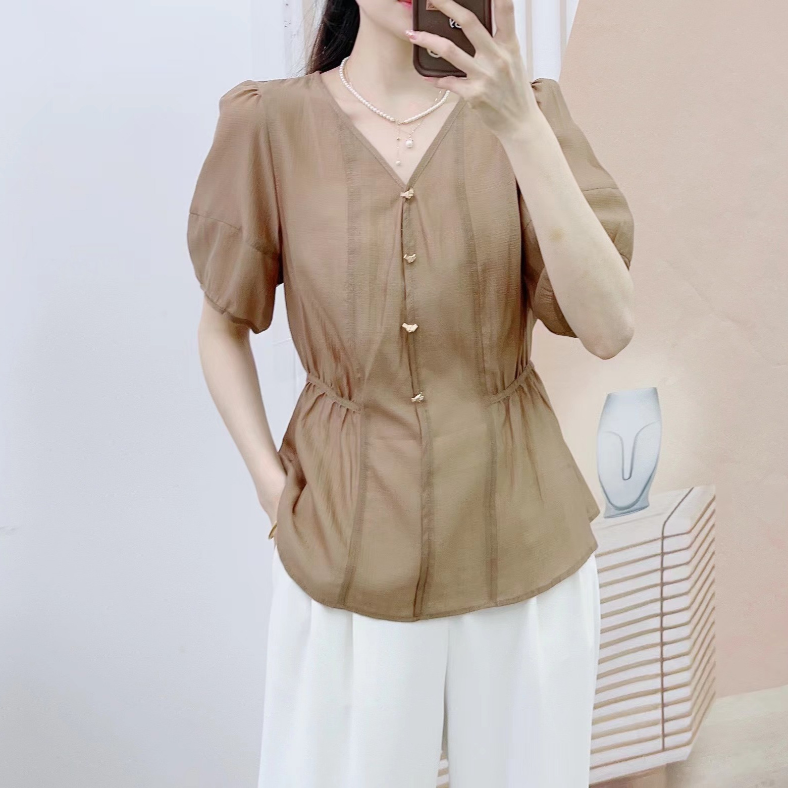 | nameOriginal | 2024 Summer Han Pai Brand Counter Fashion Temperament Waist Collar Short Sleeve Slimming All-match Small Shirt 065 |