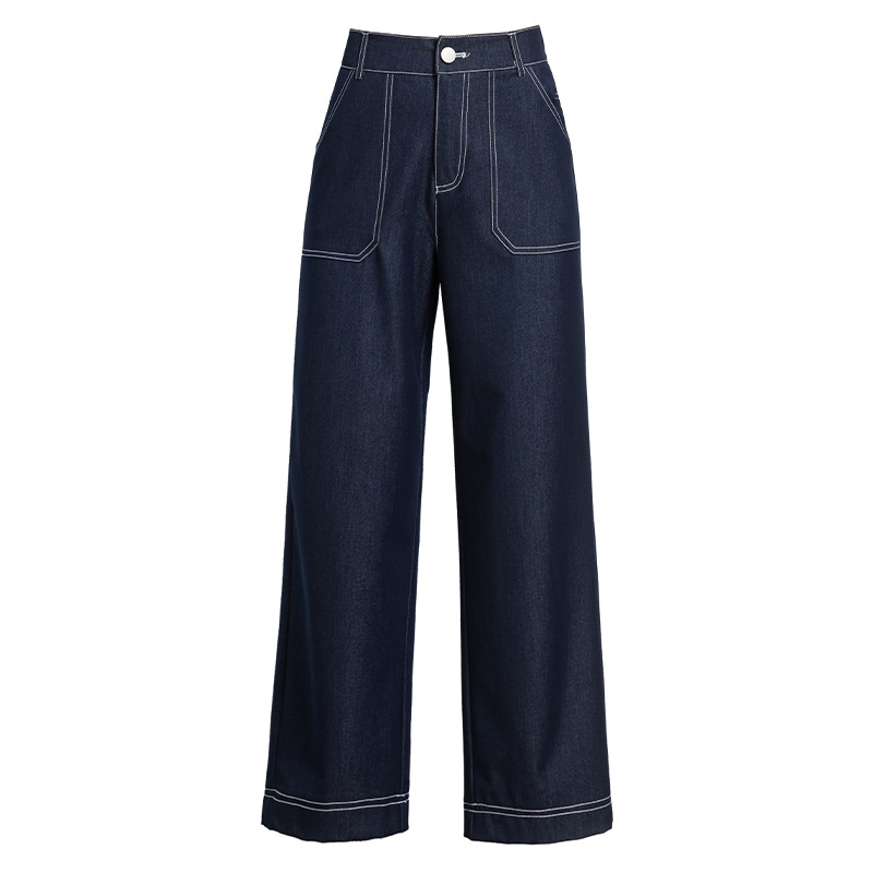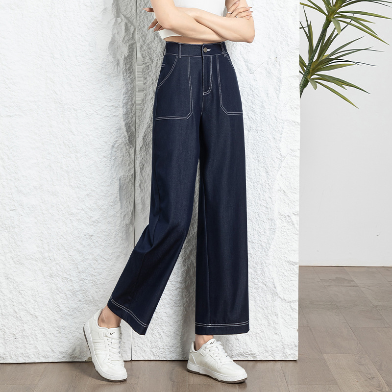 2024 Summer Ice Cool Faux Denim Wide Leg Pants Loose Cropped Women's Wide Straight Pants