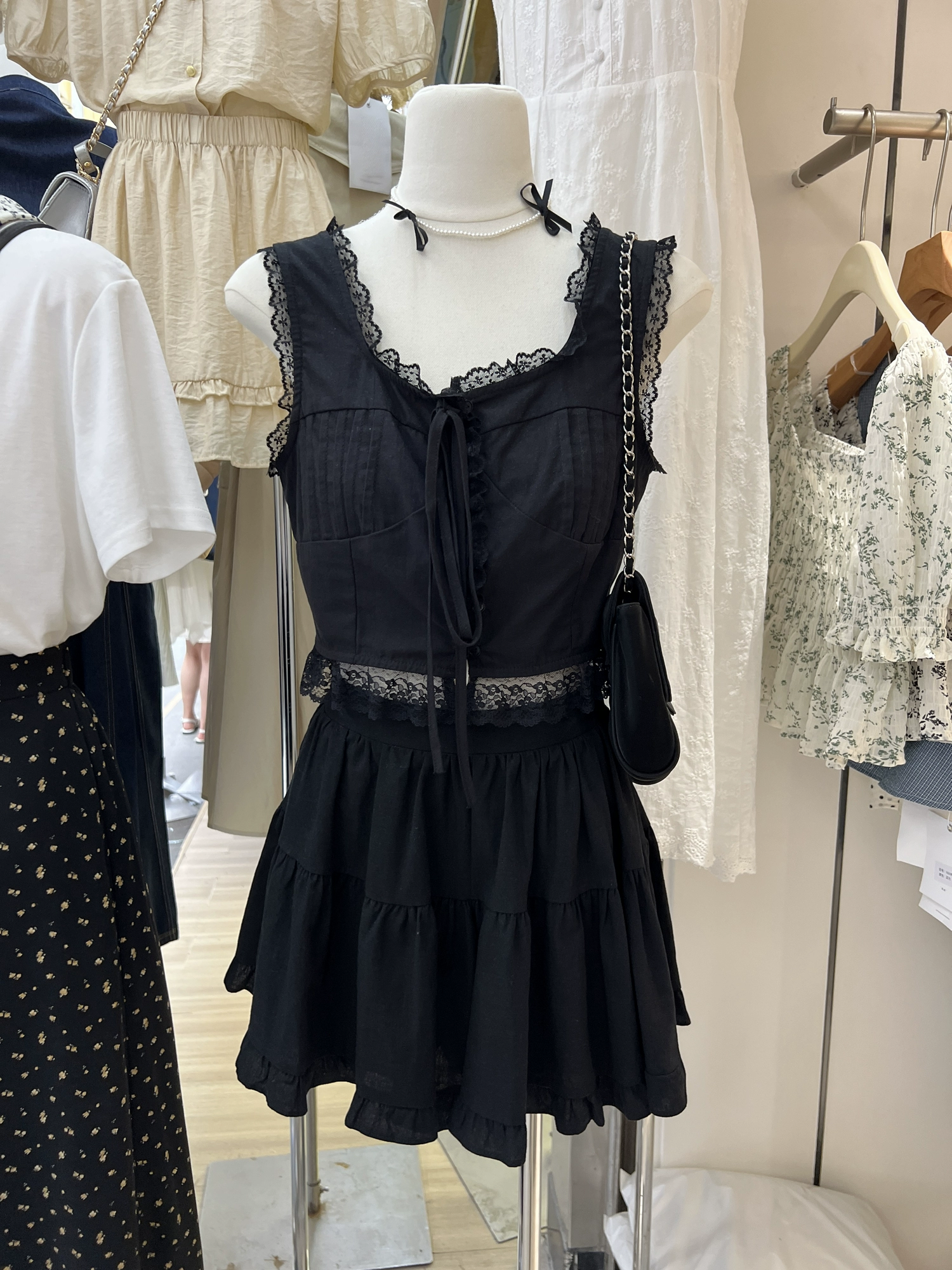 | nameOriginal | 2024 summer Korean style commuting temperament sexy lace vest strappy shirt + small fresh short skirt suit |