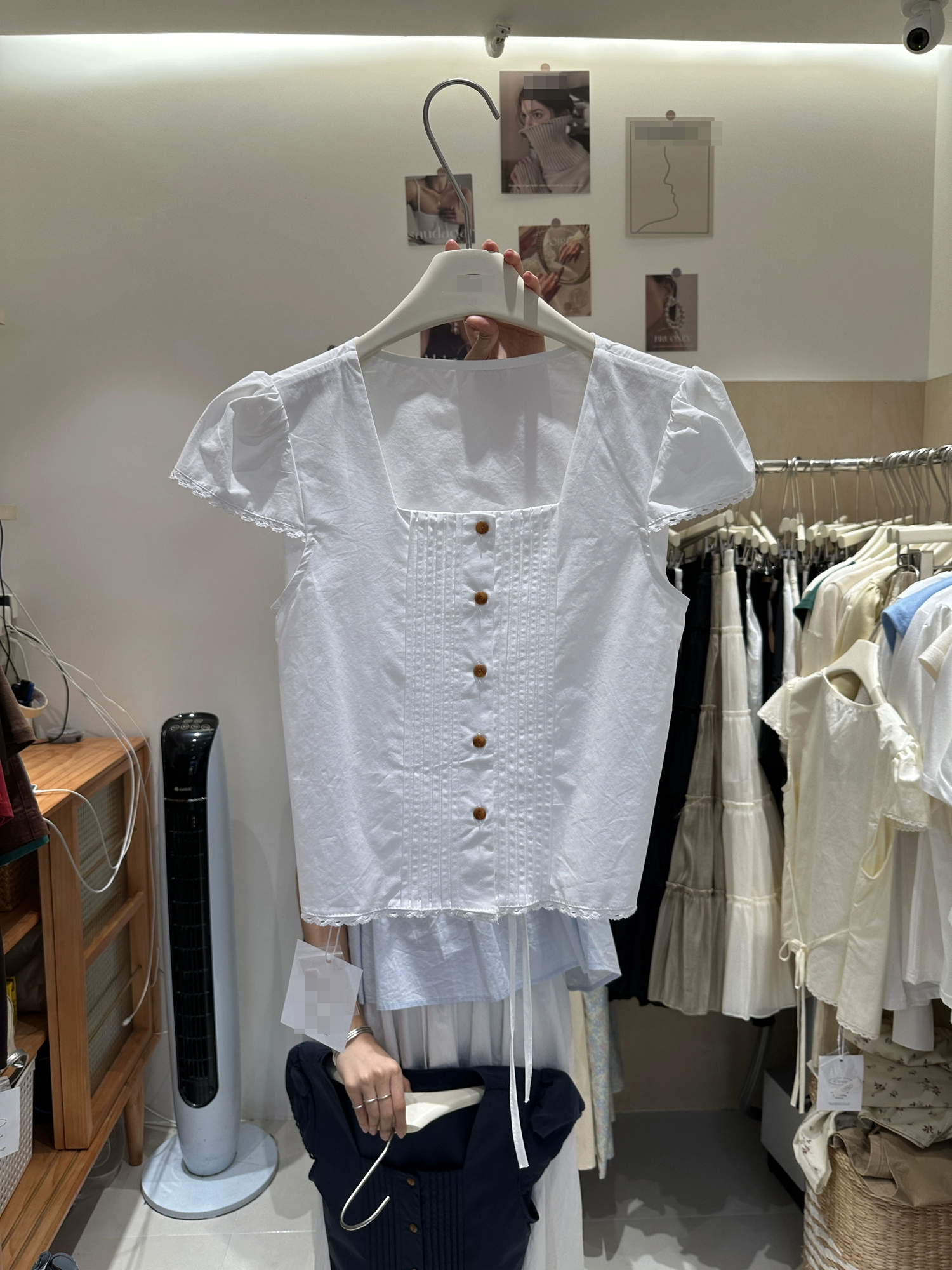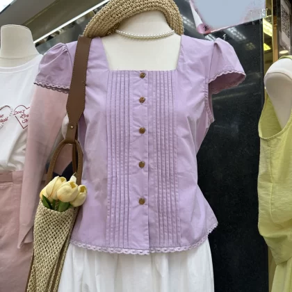 قميص صيفي فضفاض برقبة مربعة ومطويات وأربطة 2024