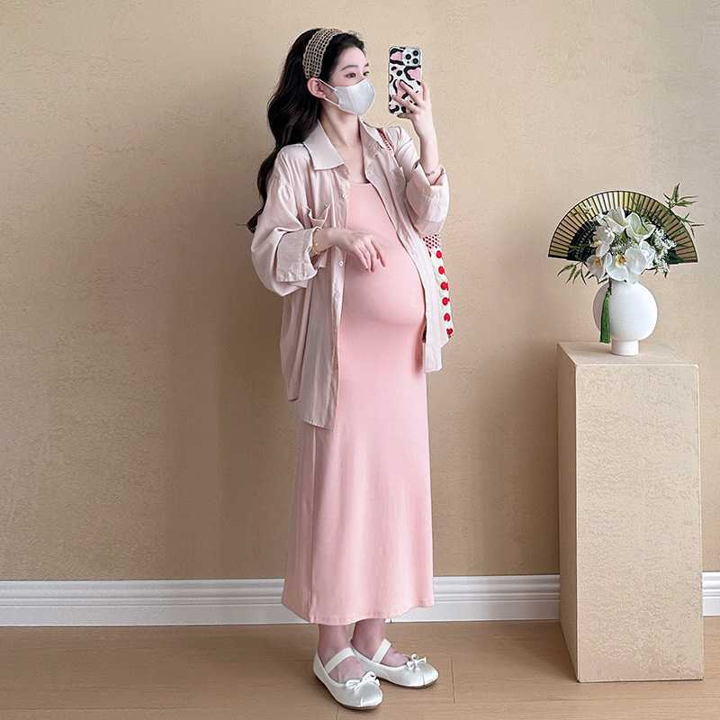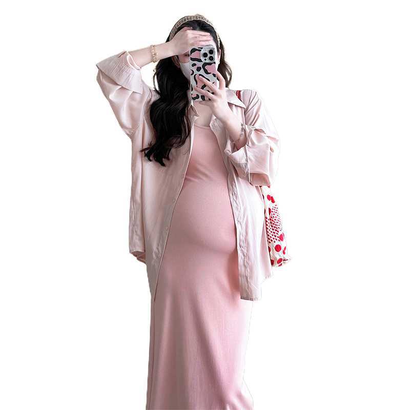 | nameOriginal | 2024 Summer Maternity Dress Simple Fashion Two-piece New Style Shirt French Slim-fit Hip Pregnant Women's Slip Skirt |