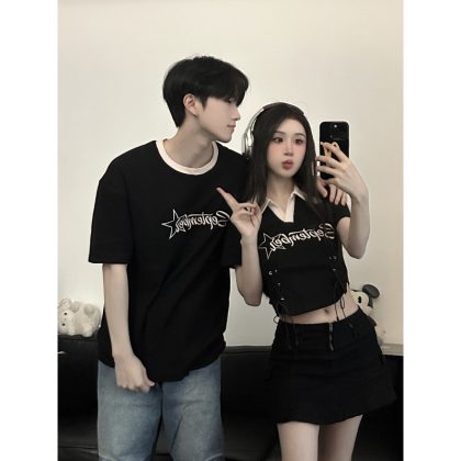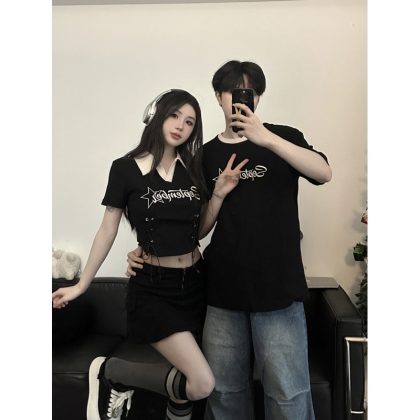 | nameOriginal | 2024 Summer new American retro short POLO collar sweet and spicy street casual style couple's T-shirt |