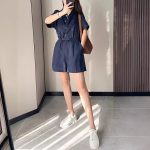 | nameOriginal | 2024 Summer New Arrival Linen Denim Blue Lar Jumpsuit Shorts Women's Chic High Texturous Elegant Slim Look Jumpsuit |