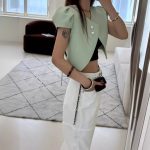 2024 صيف جديد وصول كوريا الجنوبية شيك كل مباراة النمط الفرنسي شيك على شكل قلب فقاعة كم المرأة معطف فوقي