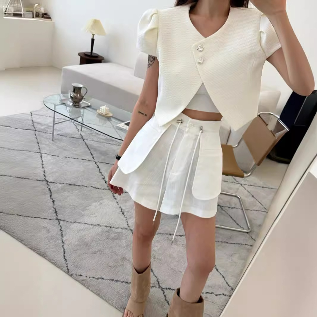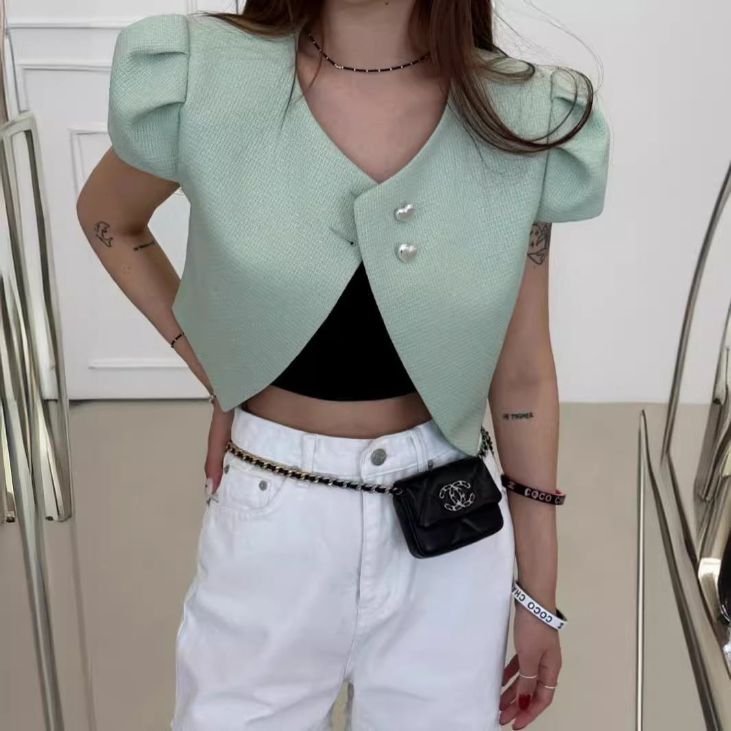 2024 Summer New Arrival South Korea Chic All-Match French Style Chic Heart-Shaped Bubble Sleeve Women's Top Coat