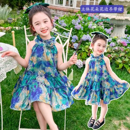 | nameOriginal | 2024 Summer New Children's Wear Girls' Three-Dimensional Flower Neck Hanging dress Sleeveless Floral Vacation Dress for Children |