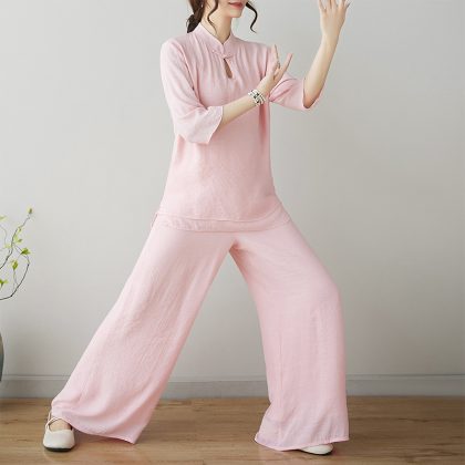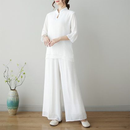 2024 Summer New Chinese Retro Loose Slimming Casual Elegant Zen Tea Suit Yoga Taiji Suit for suit Women
