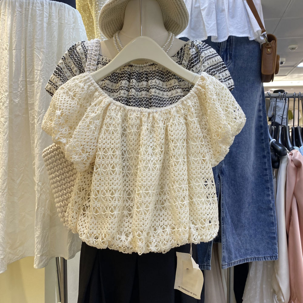 | nameOriginal | 2024 Summer New Crochet Hollow Short-sleeved Shirt Women's Puff-sleeved Pullover Short Top Trendy |