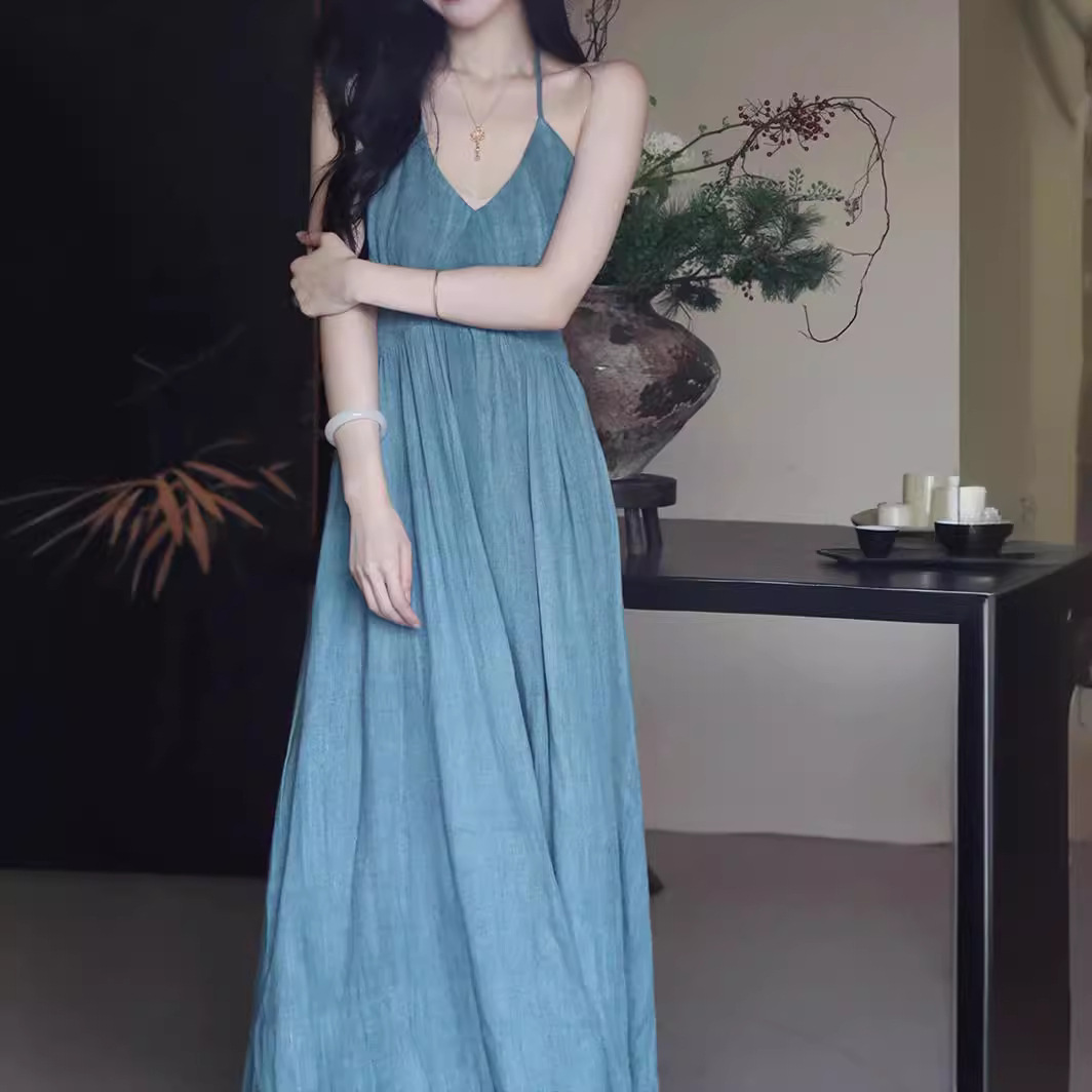 | nameOriginal | 2024 summer new design fried color linen [sky rain] national style new Chinese neck suspender temperament dress |