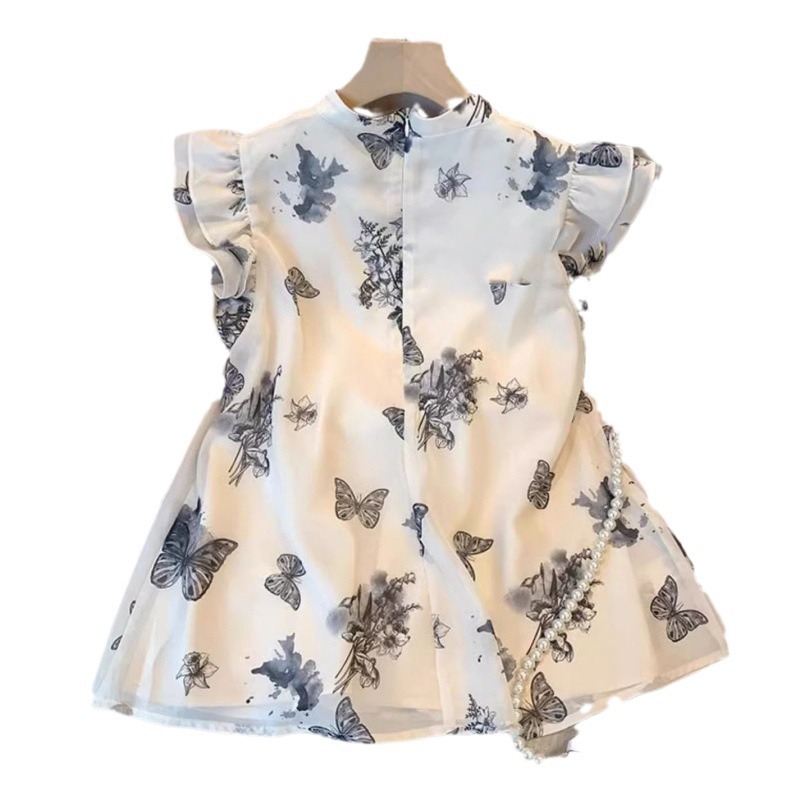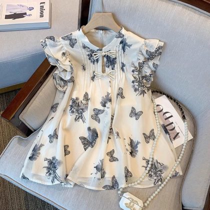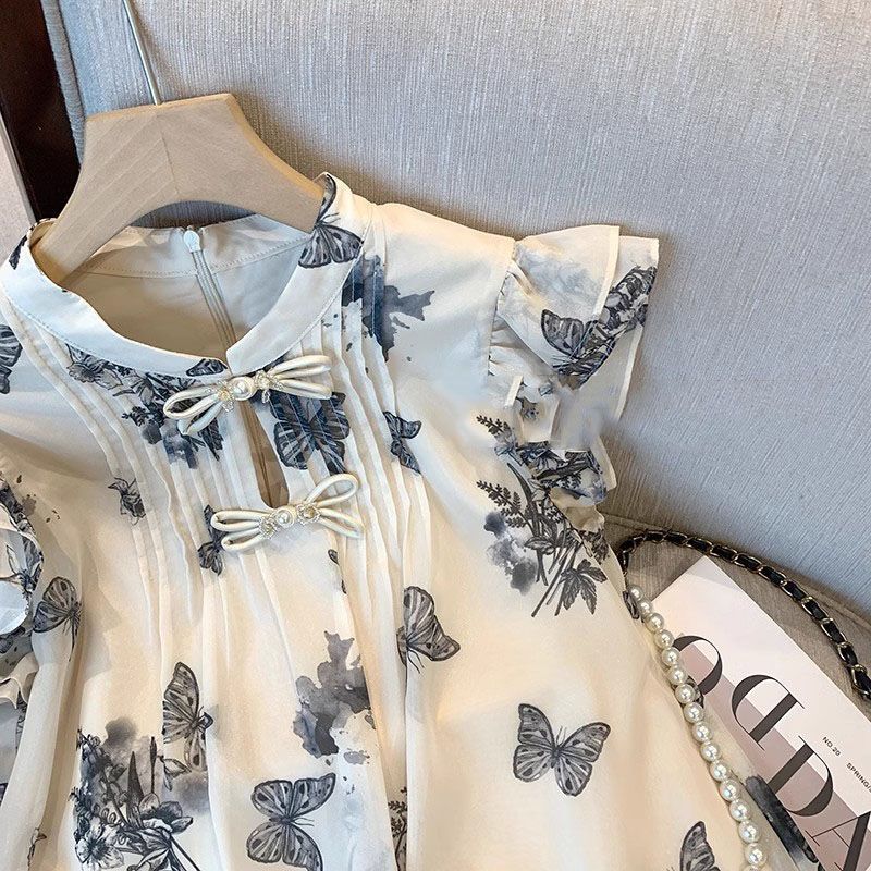 | nameOriginal | 2024 Summer New Design Sense Niche Top New Chinese Style National Style Vintage Butterfly Printed Small Flying Sleeve Shirt for Women |