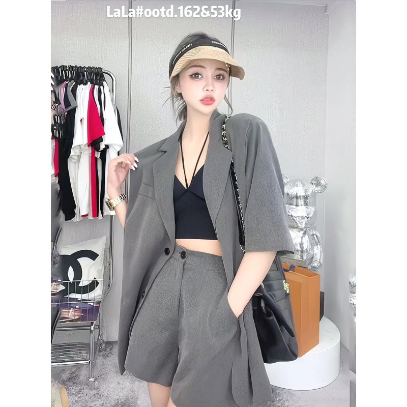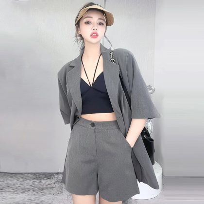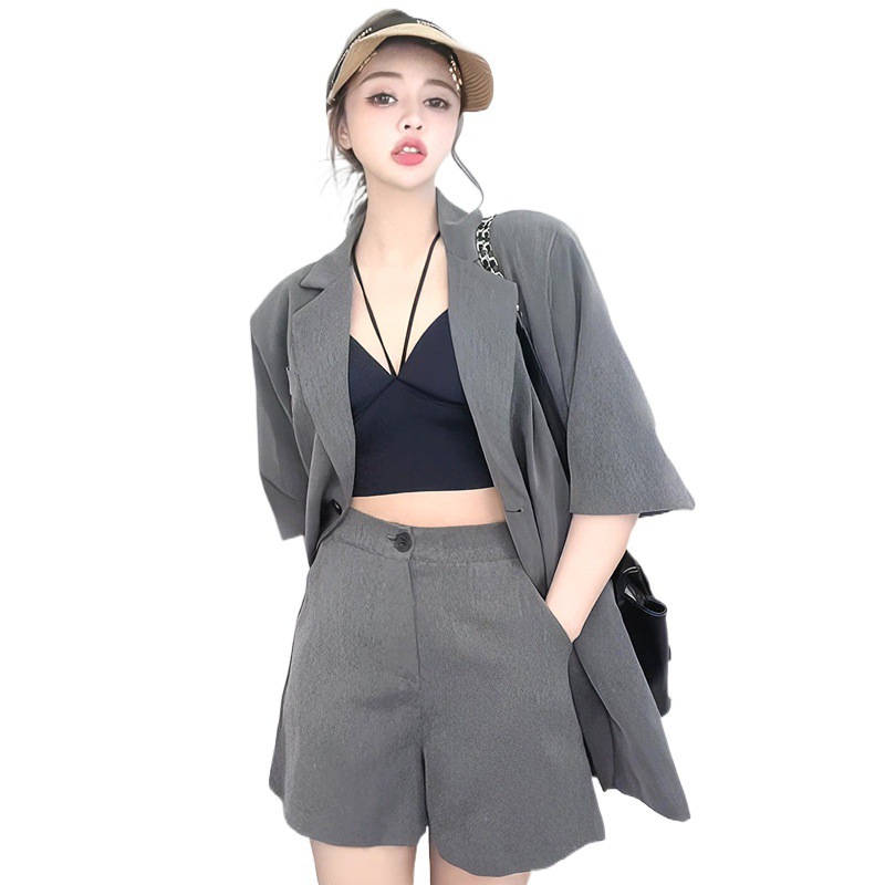 2024 summer new fashion suit women's temperament short sleeve suit top coat shorts two-piece set