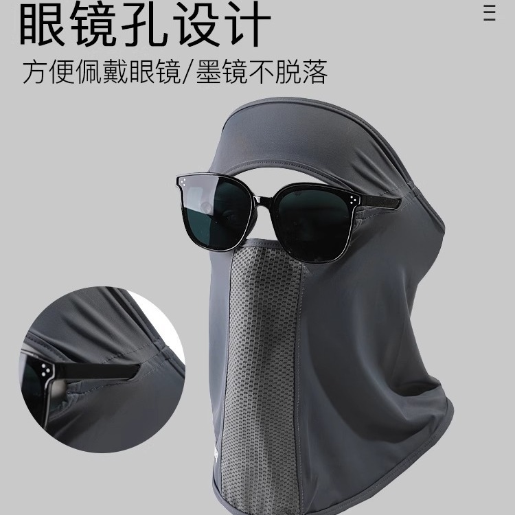 2024 Summer new full face neck protection integrated sun mask men's UV protection outdoor Ice Silk Face Kini
