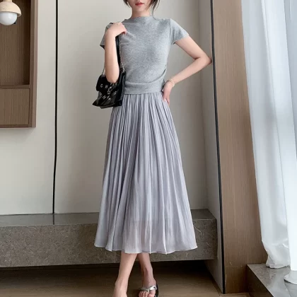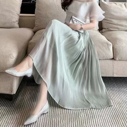 | nameOriginal | 2024 summer new high-waisted slim flowing gauze skirt women's mid-length a-line skirt casual versatile pleated |