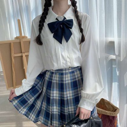 | nameOriginal | 2024 summer new Japanese girl high school college organ pleated short sleeve pocket uniform chiffon straight shirt |