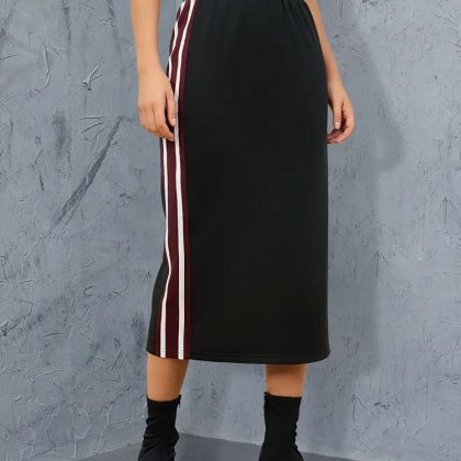 | nameOriginal | 2024 Summer new knitted contrast color ribbon stitching skirt straight skirt temperament commuter mid-length skirt one-piece delivery |