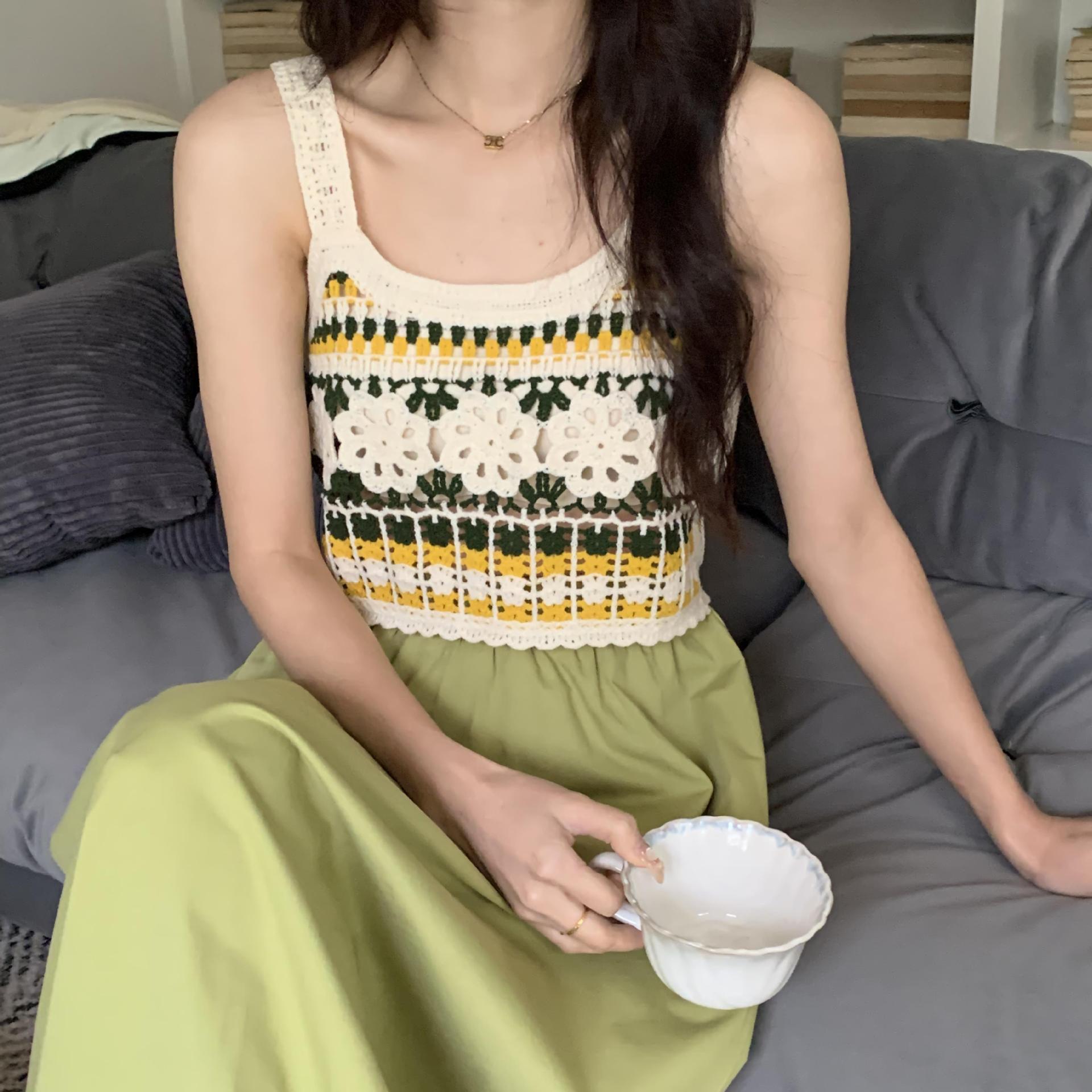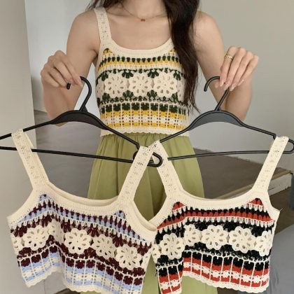 | nameOriginal | 2024 Summer New Knitted Hollow Embroidered Floral Stitching Contrast Color Camisole Women's Small Vest |