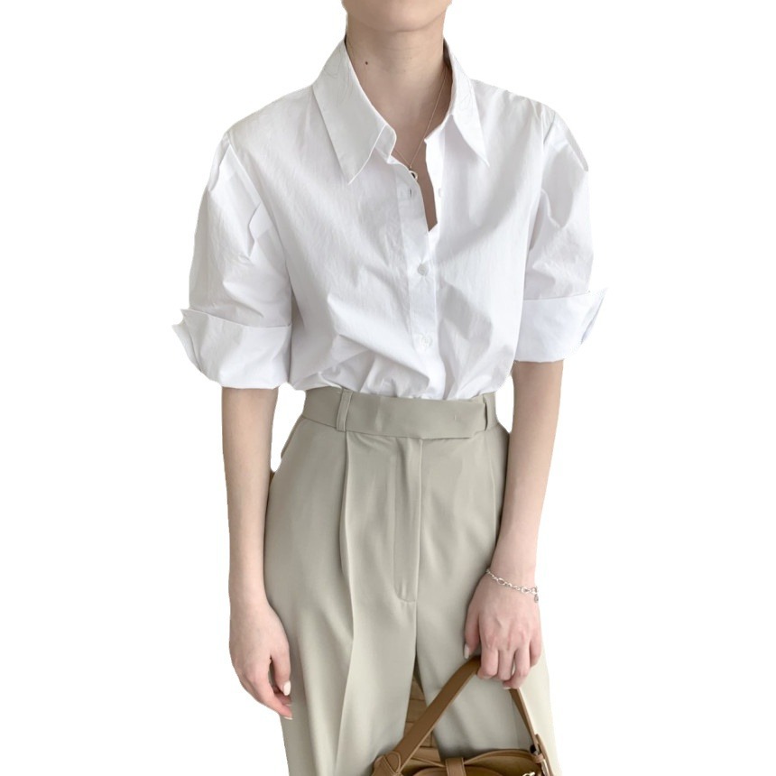 2024 Summer New Korean Short-sleeved Simple Design All-match Elegant Niche Shirt