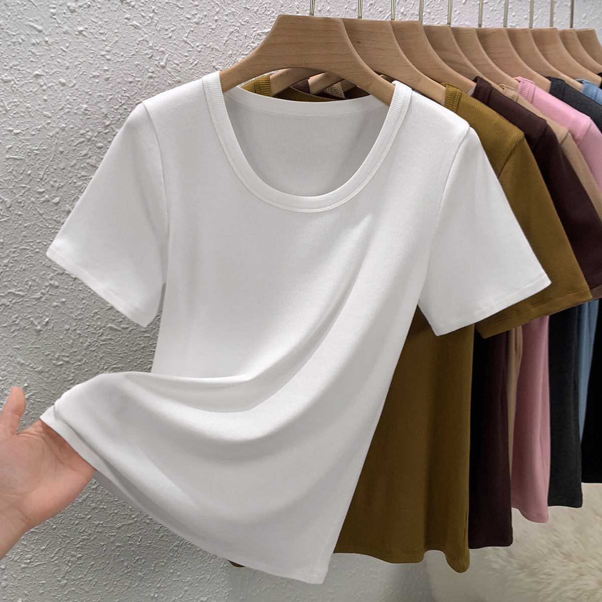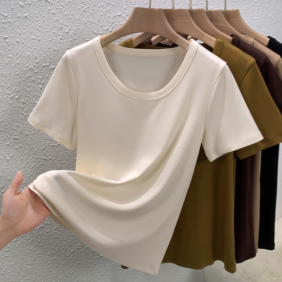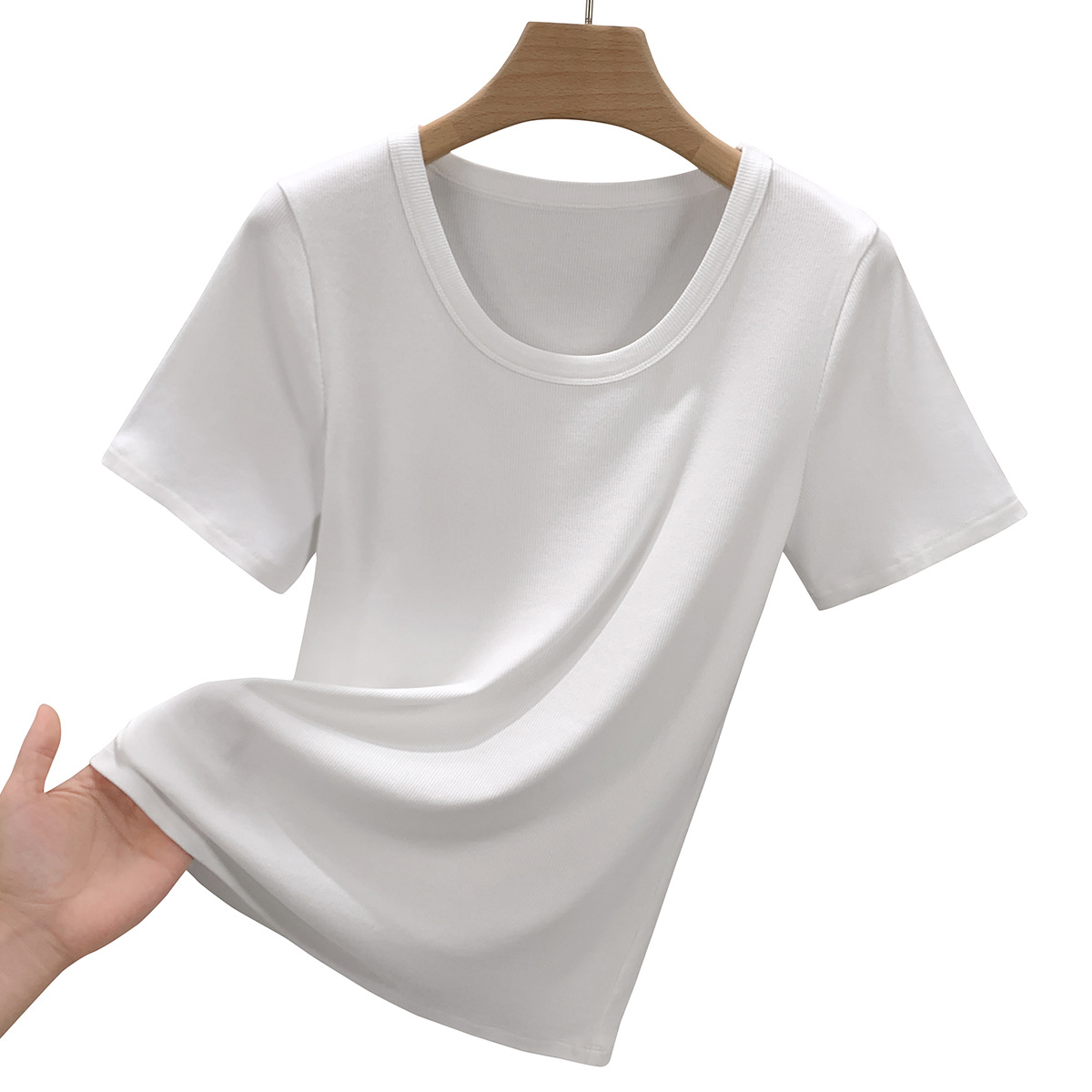 | nameOriginal | 2024 Summer new large neckline shoulder Women's T-shirt modal low round neck 1688 top white short sleeve t-shirt |