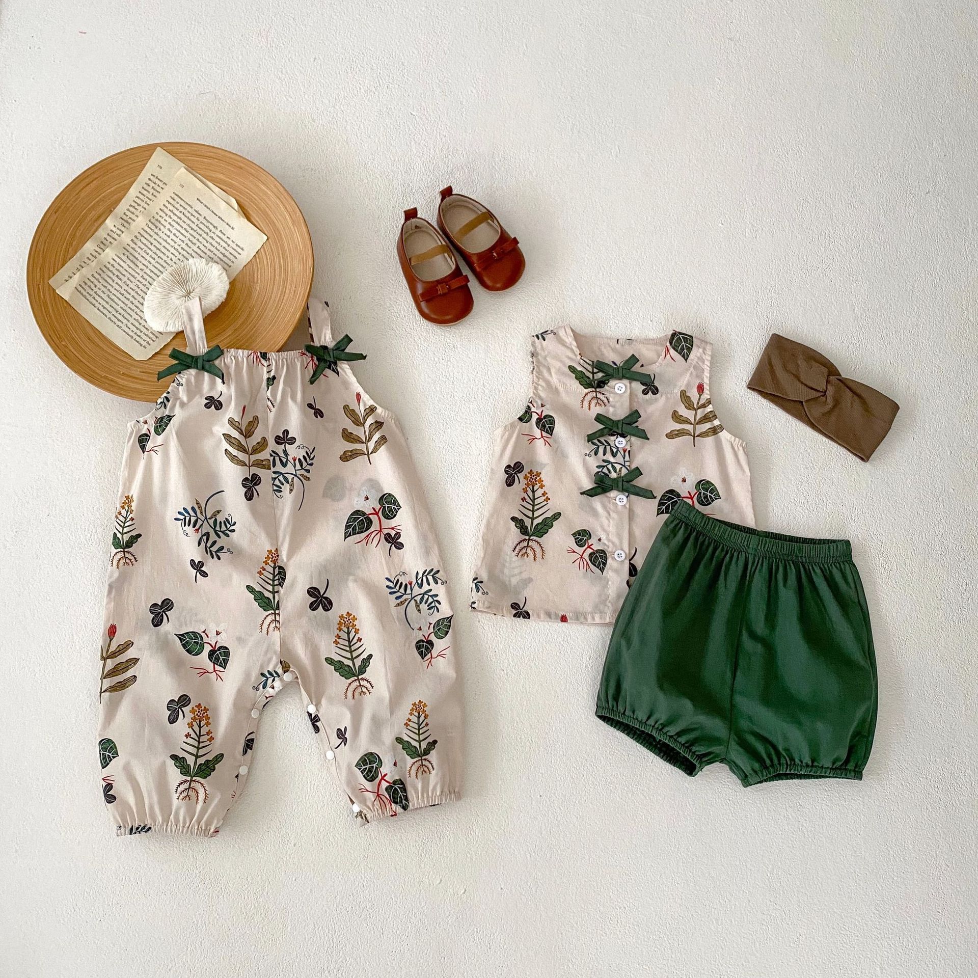 | nameOriginal | 2024 summer new men's and women's baby baby's leaf printing sling long climbing jumpsuit fashion fan bag fart climbing suit |