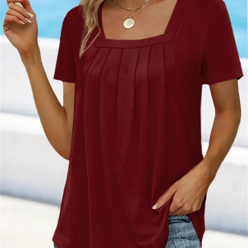 | nameOriginal | 2024 Summer new popular cross-border Amazon wish AliExpress European and American solid color women's top short sleeve t-shirt |
